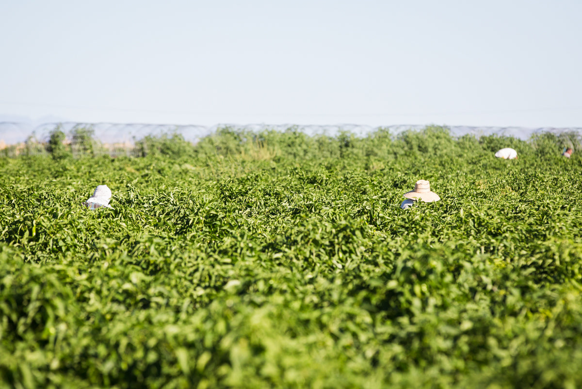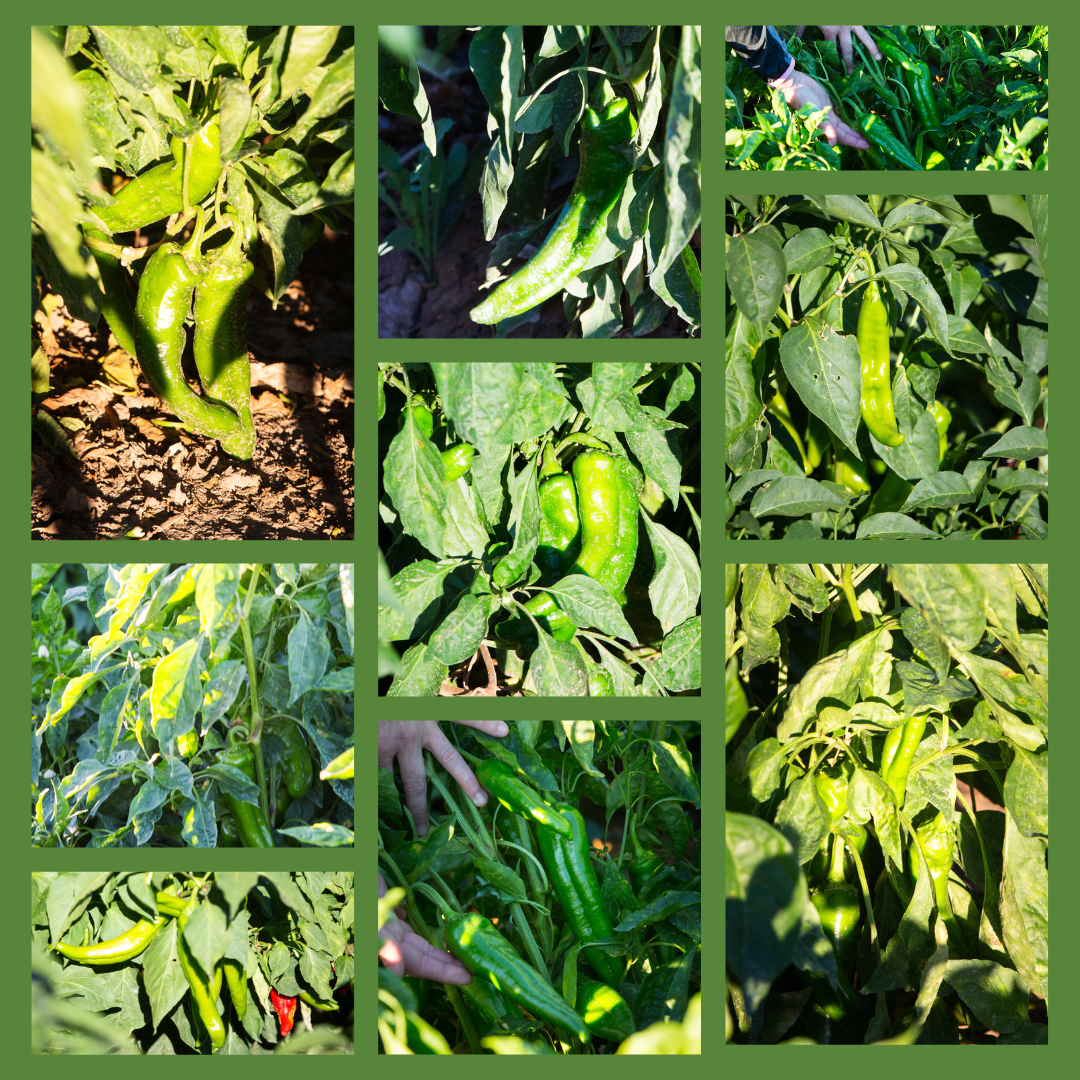 If you have been keeping up with us this summer, you know that we have had a tougher-than-normal chile season. Because of the extreme heat, we experienced a harvest gap. So much chile turned red before it was ready to use. That chile wasted on the plant. Because it couldn't be harvested, the farmers came in and took the tops off the plant, leaving the chile that was at the bottom. This is called shredding. Now, there is new growth with much healthier plants. As we pulled back the leaves to see the new growth, there was still evidence of the wasted chile. It is very sad to see how much was wasted due to the heat.