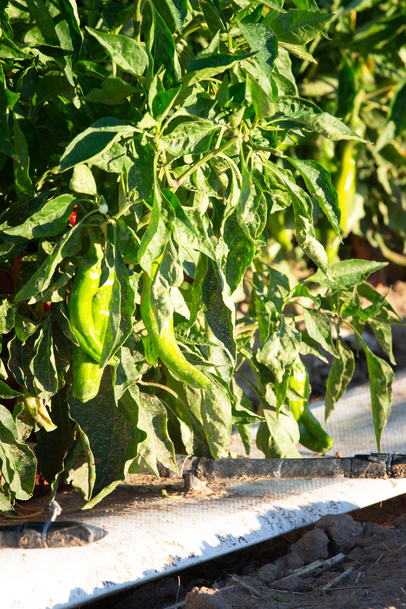 We stopped at several fields so I could see the different varieties of chile, as well as the difference between fields started from transplants and those from seeds. The field in the photo above was started from transplants, you can tell by the uniformity of the height of the plants.