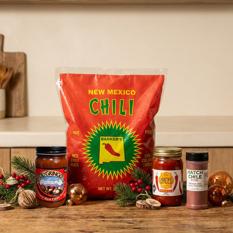 This bundle includes 6 oz Hatch Red Chile Powder, 16oz Hatch Red Chile Pods, Fresh Red Chile Sauce, an Ol' Gringo's Sundried Sauce.