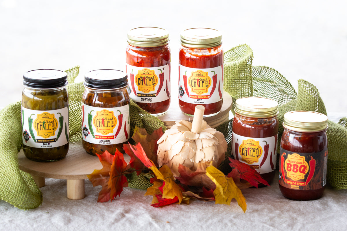This bundle includes one jar of Hatch Red Chile Sauce, one jar of Traditional Red Chile Sauce, one jar of Hatch Red Chile Roast, one jar of Hatch Chile BBQ Sauce, one jar of Hatch Green Chile Roast, and 1 jar of Hatch Red & Green Chile Roast.