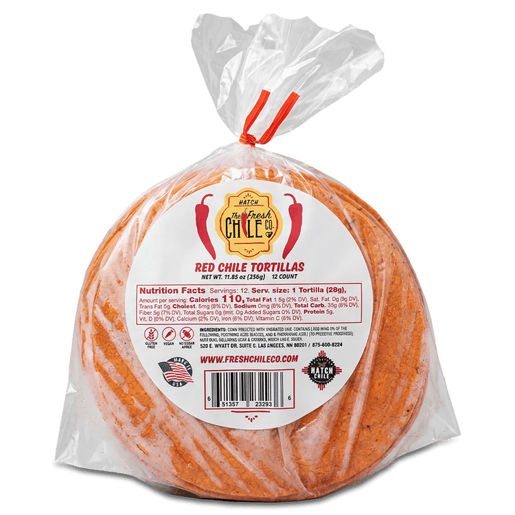 Our Hatch Red Chile Corn Tortillas are made with our flavorful and colorful Hatch Red Chile. They are handmade in small batches and have a medium heat level.